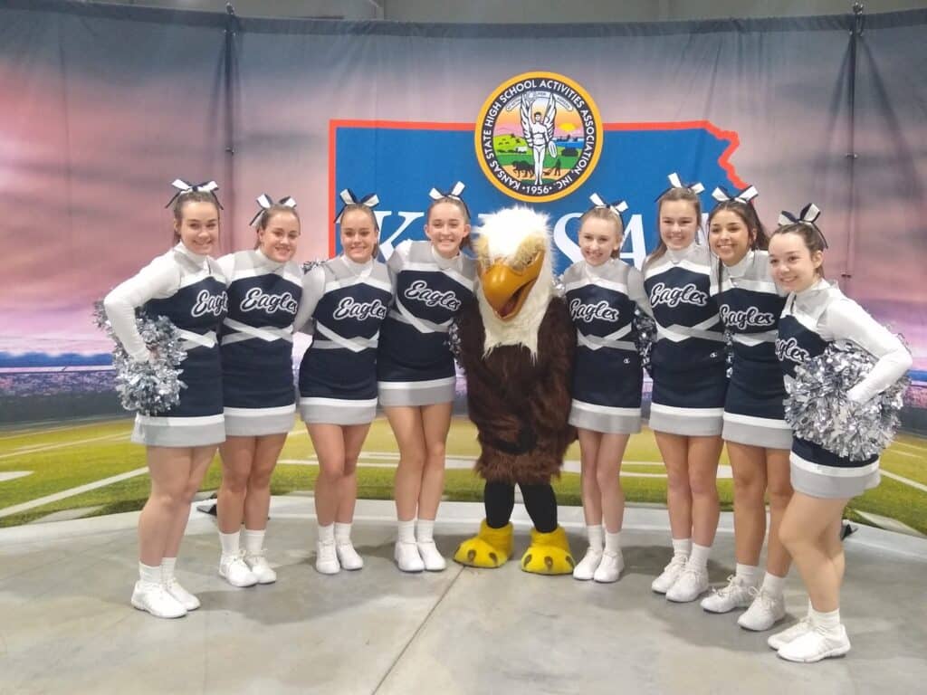 The Elyria Christian Cheer squad includes Jory Glendening, Megan Koehn, Ashley Koehn, Kilynn Starburg, Brianna Stucky, Macy Reiff, Mina Aroum, Elli Pulscher, and the mascot is Carlie Joe Rohaus. The assistant coach is Kourtney Brumley.