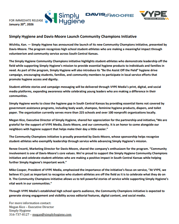Simply Hygiene and Davis-Moore Launch Community Champions Initiative